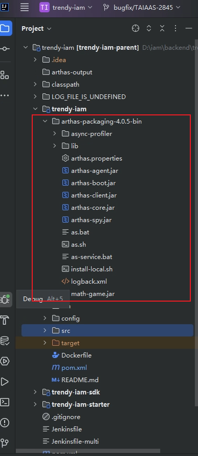 在Arthas官网下载arthas-packaging-4.0.5-bin压缩包,解压后放到iam的根目录中如图所示