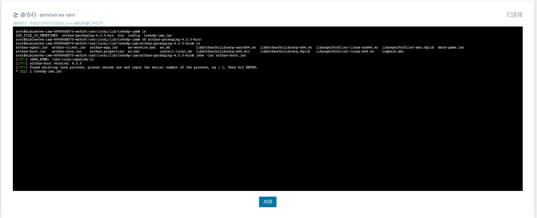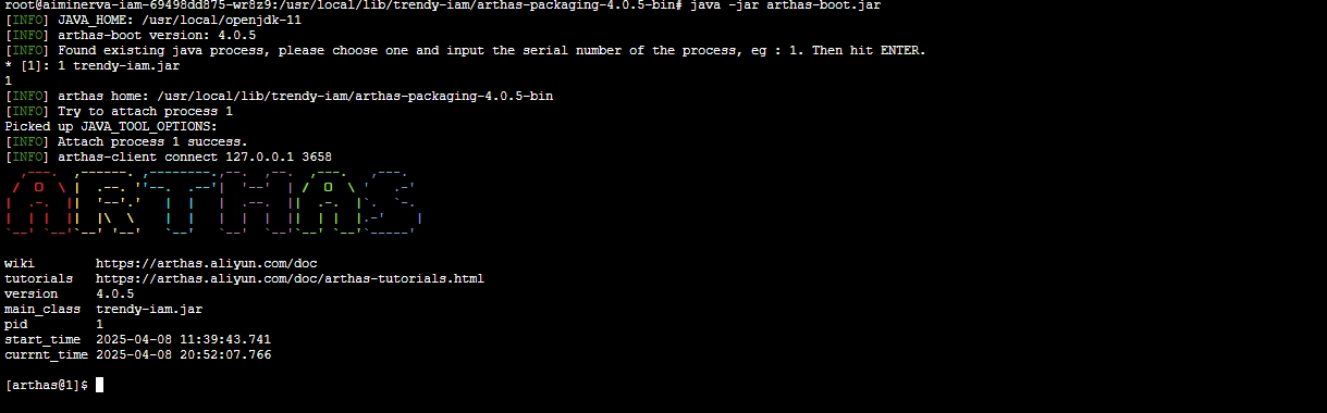 执行 java -jar arthas-boot.jar命令启动arthas如图: