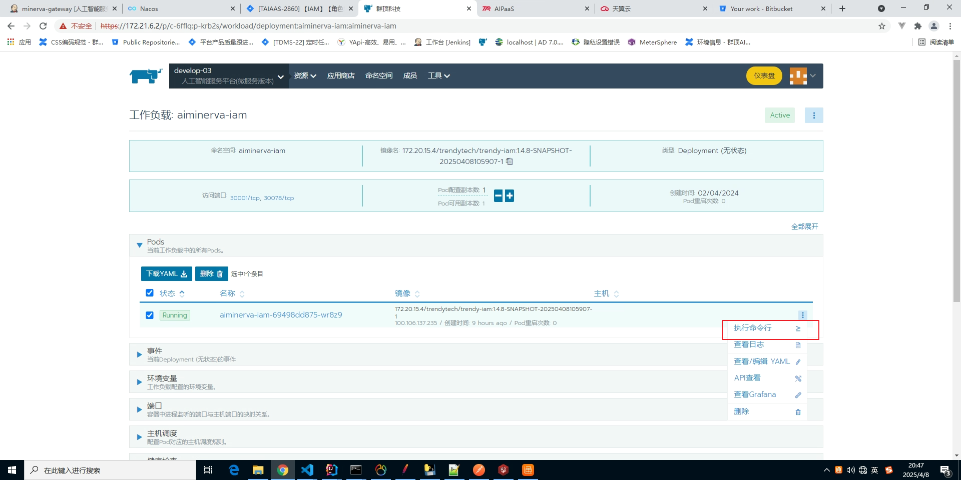 CMD ["./bin/trendy-iam", "run"]打包镜像成功后进入rancher执行命令行