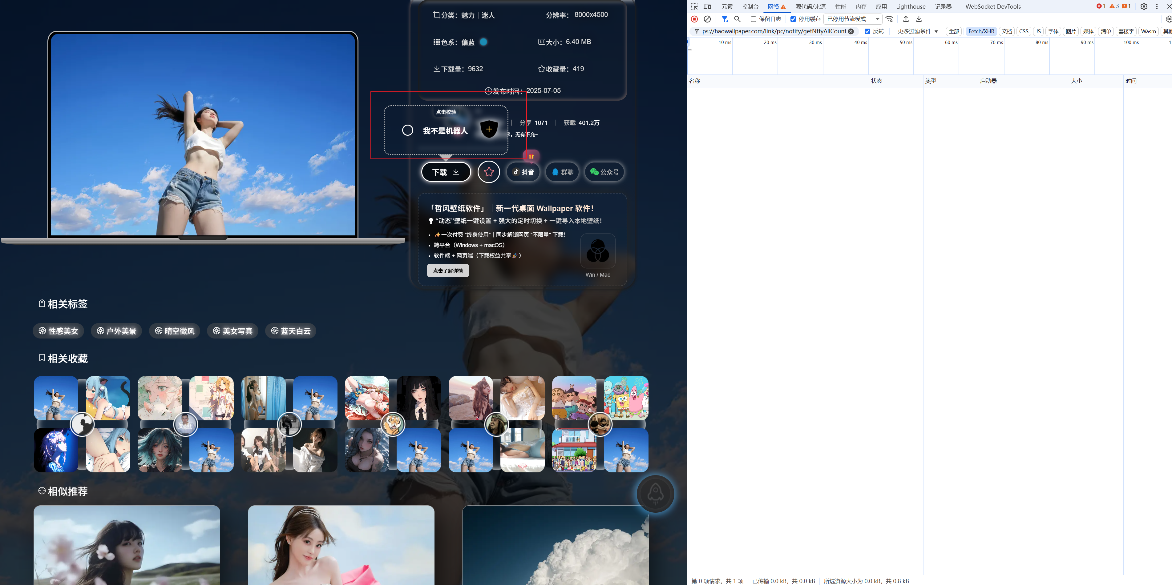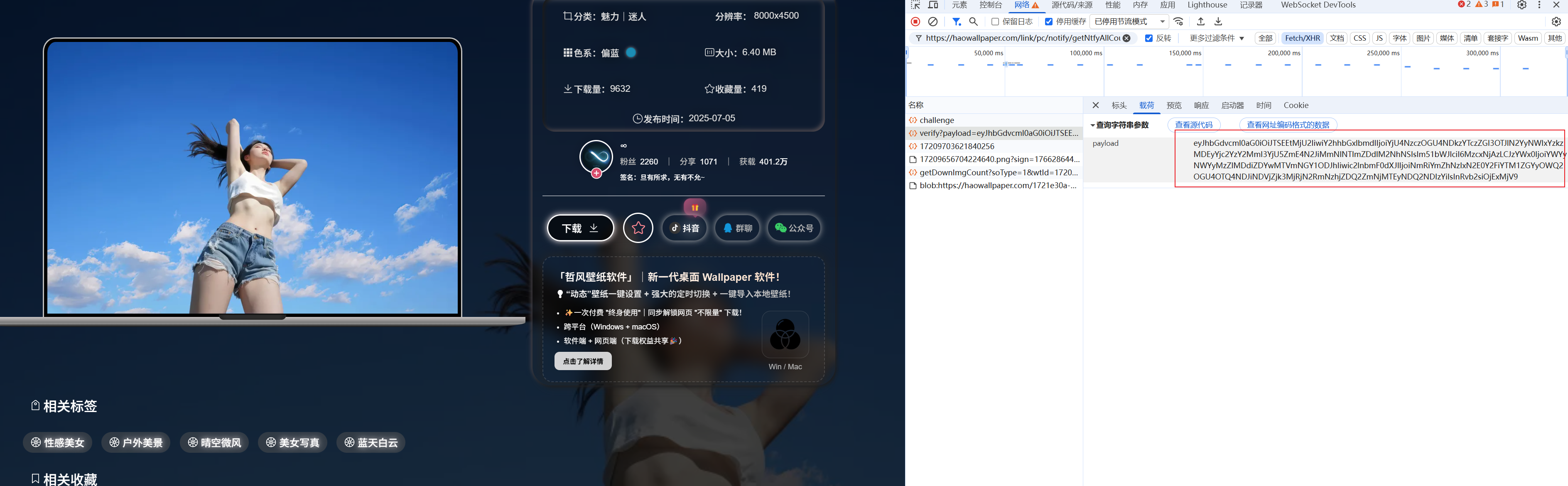 https://haowallpaper.com/link/pc/certify/verify和https://haowallpaper.com/link/common/file/getCompleteUrl/17209703621840256接口 必须在请求头带上tokenhttps://haowallpaper.com/link/pc/certify/verify接口有验证有效期,估计只有几秒,所以 验证通过后尽快去请求图片访问地址