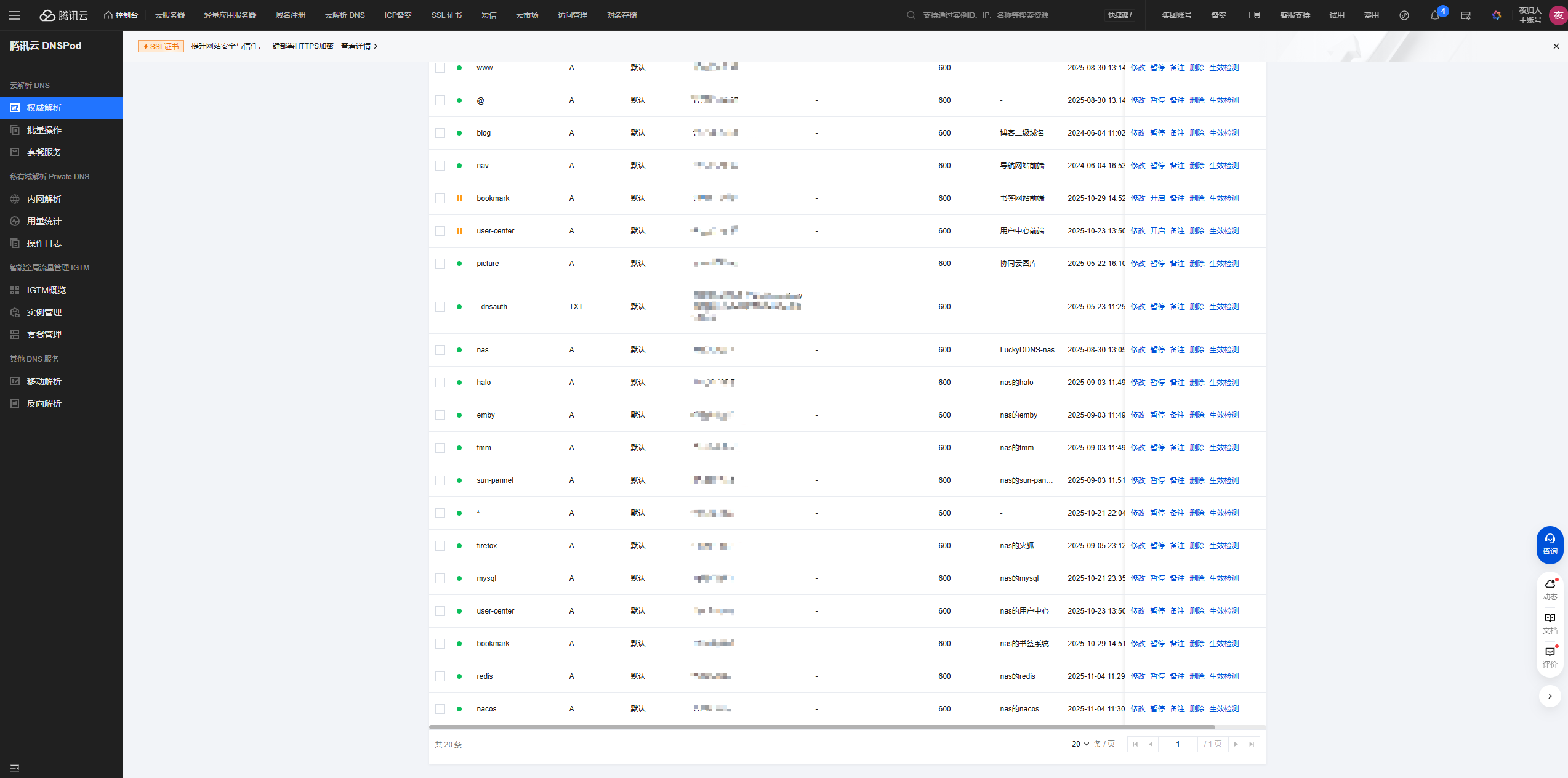 我自己是购买的腾讯云的域名服务,当时这个域名50元买10年,lucky!