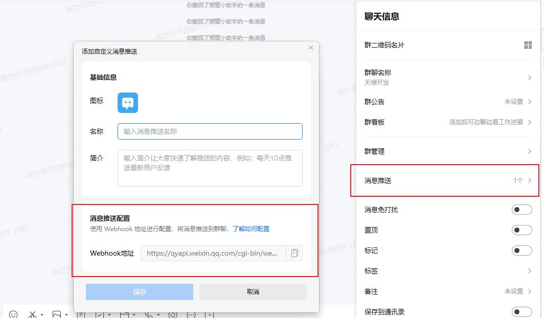 申请企业微信Webhook的key