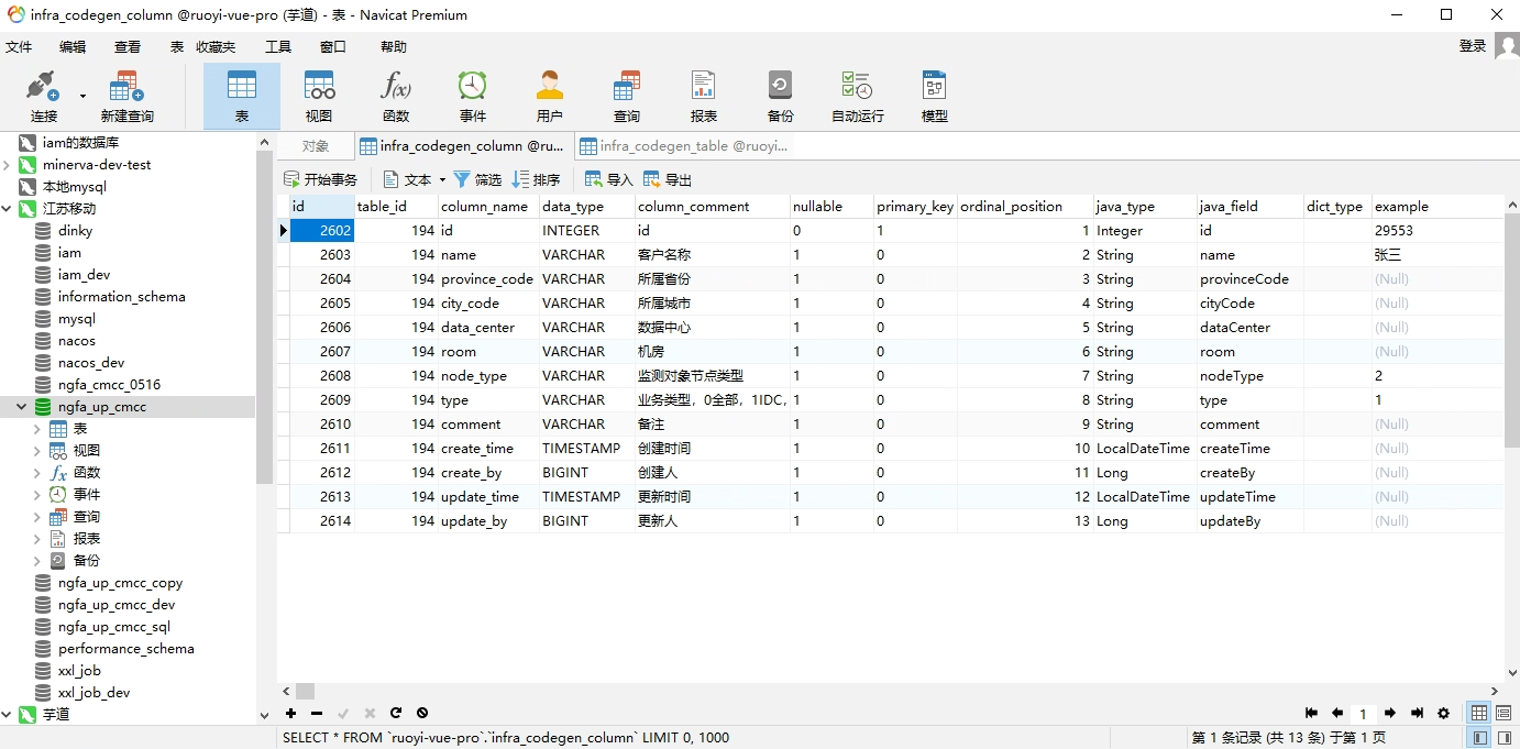 List<CodegenColumnDO> columns = codegenBuilder.buildColumns(table.getId(), tableInfo.getFields());