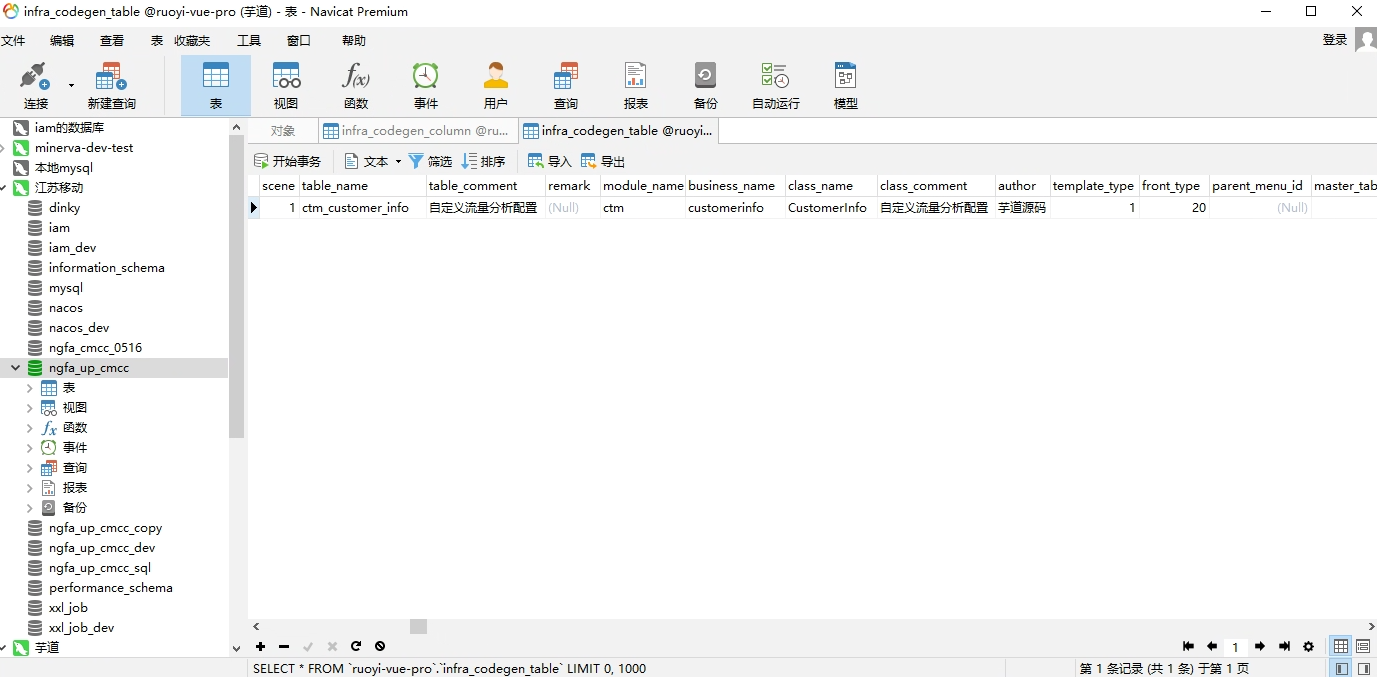 芋道目前是基于数据库表来进行基础代码生成的,即一个表对应一个页面的基础展示表格和添加修改表单。